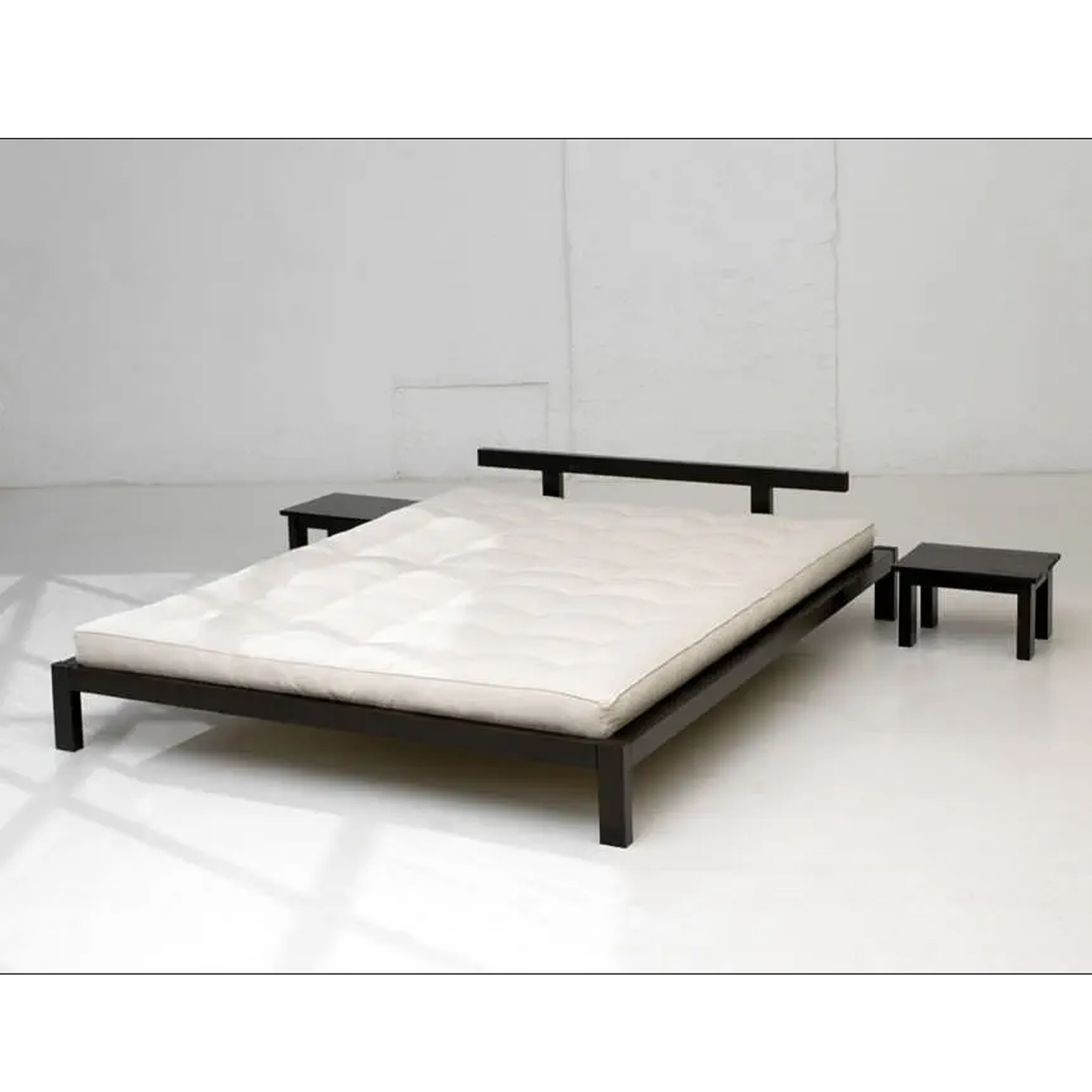 Das Designerbett vom Karup vereint geschickt modernen und klassischen Stil und verleiht jedem Schlaffzimmer eine individuelle Note. Inspiriet vom traditionellrn japanischen Futon , präsentiert Karup ein niedriges Bett aus Kiefernholz, das sowohl modern als auch zeitlos wirkt. Das Bett wird mit einem Rollrost aus Kiefernholz geliefert, der Kopfteil aus Holz ist inklusiv. Die Füße sind unten teil in Silber, sehe Bilder. Inklusive: 1B Futonmatratze (bequem und stabil, mit kleinen optischen Mängeln) sowie zwei stilvolle Nachttischchen im asiatischen Design – passend zum Bett und sehr praktisch.