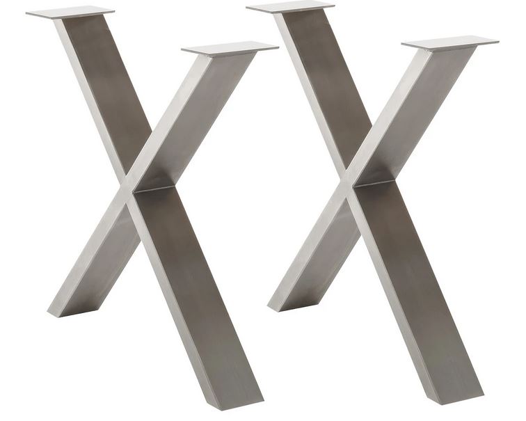Set 2-er Gestell X-Form Tischgestell Metal Edelstahl Look Tischbeine Füße