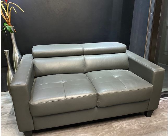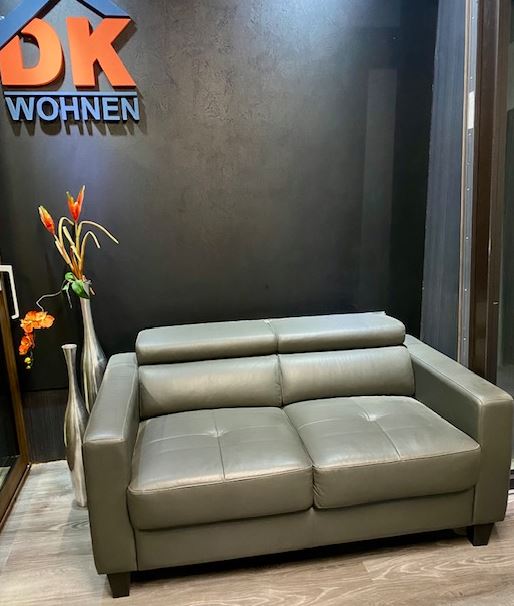 Sofa, Polster Garnitur 2-Sitzer ,verstellbarer Kopfstütze und Holzfüßen, Echtleder grau Muster Abholung
