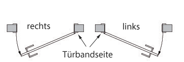 Schauen Sie immer von der Raumseite aus wo die Türbänder der Zarge zu sehen sind.