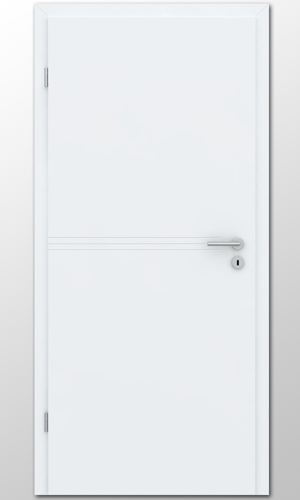 Feine 3 mm Rillenfräsungen verleihen unserer Goro 4 eine schlichte, aber auch erfrischende Eleganz, weshalb sie auch zu den beliebtesten weißen Innentüren zählt. Unsere Goro 4 verfügt dabei über drei horizontale Linien, die nur einen minimalen Abstand zueinander haben und so für einen dezenten Blickfang sorgen. Die lackierte Oberfläche strahlt in einem der weißesten Weißtöne in Anlehnung an RAL 9003. Das Türblatt verfügt über eine Designkante, die mit ihrem minimalen Kantenradius das moderne Design betont.