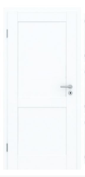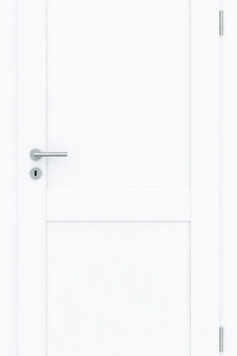 Die moderne Stiltür verbindet klassische Kassettenoptik mit zeitgemäßem Design. Die 30 mm breiten Rillenprägungen verleihen ihr eine elegante Struktur, die sich harmonisch in verschiedenste Wohnstile einfügt. Die Lackoberfläche in Weißlack 1.0, angelehnt an RAL 9003, lässt sich mühelos in nahezu jedes Farbkonzept integrieren. Das Türblatt mit rechtwinkliger Eckkante unterstreicht die klare Linienführung und den zeitlosen Charakter dieser Tür.